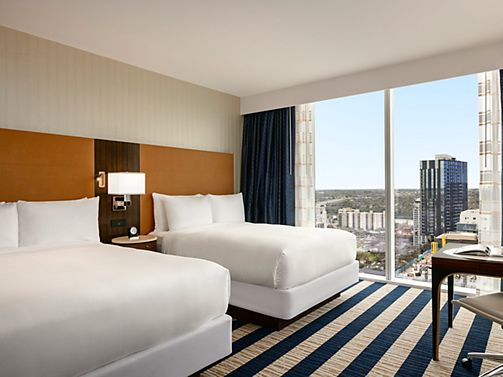 50in HDTV, City Skyline Views, Nespresso Coffee, Tea Kettle, Floors 32-35, Height Adjusted Peep Hole, Hand Held Shower, Lower Shelf in Closet