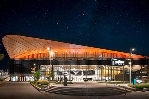 Exit 234B, then follow to E 1st St/E Cesar Chavez St. to Red River St.