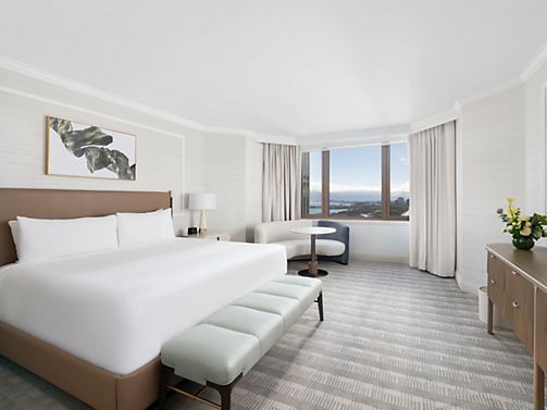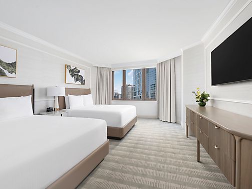 Newly fully renovated, City views with Fairmont Gold Lounge access, includes hot breakfast and evening snacks. Walk in shower with dual vanity area for comfort. Guestrooms include sitting area with workspace.