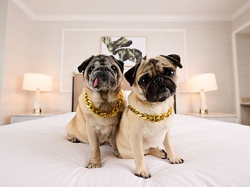 Yes! Dogs and cats under 40 pounds are permitted but cannot be left unattended and must be on a leash. There is a $150 non-refundable room cleaning fee for short-term stays. Service dogs are always welcome and exempt from charges.