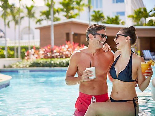 Designed to inspire island relaxation, lounge on your private balcony located just steps away from the Well and Being Pool. Mobility accessible, bathtub with grab bars, handheld shower, height adjusted room features.