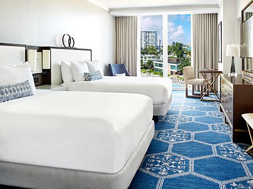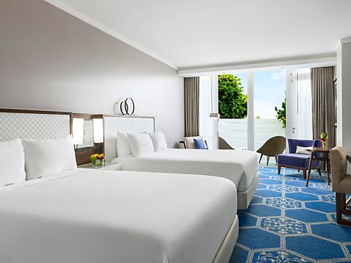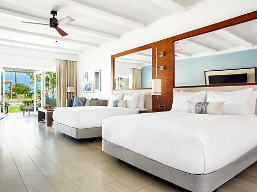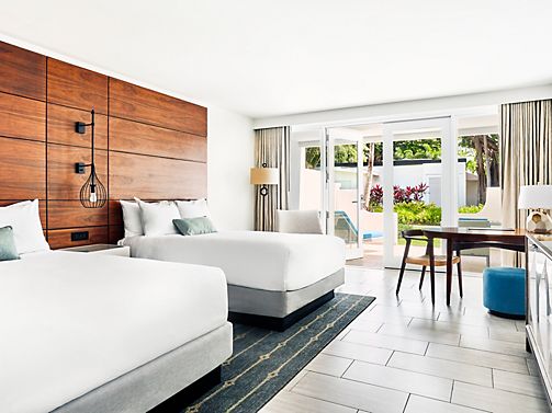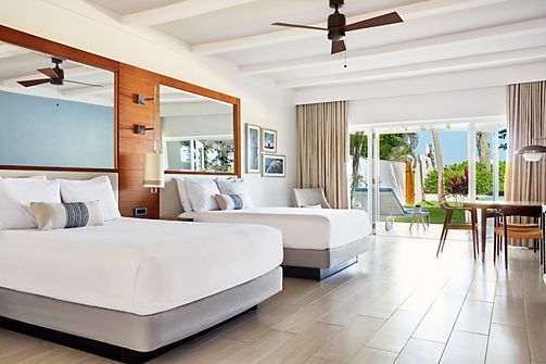 Discover a peaceful retreat in the Caribbean and escape to our San Juan paradise in a guestroom featuring two queen beds and a cozy sitting area.