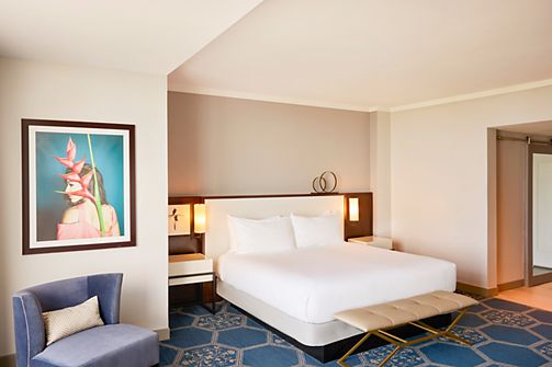 Located in the Grand Tower, this guestroom is an elegant and spacious reflection of the rich culture of San Juan that features one king bed and a luxurious comfortable sitting area. Call to inquire about guaranteed connecting options.