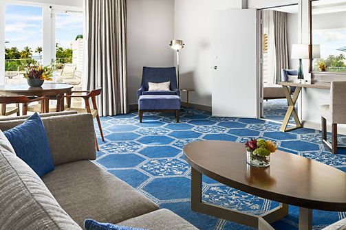Located on Floor 3 of the Grand Tower, this Suite features a spacious terrace offering Ocean and Pool Views, a parlor with dining and sitting areas and a connecting room with a King bed. Call to inquire about guaranteed connecting options.