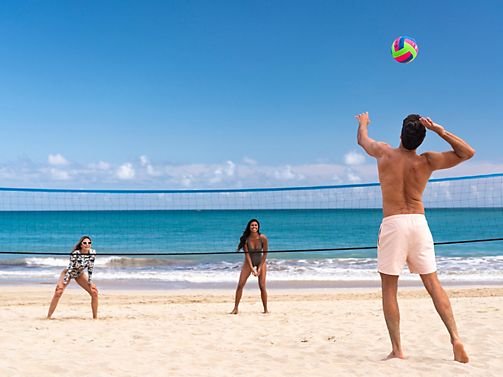Yes, we have a three-floor Well & Being Fitness Center. In addition to wellness activities, we offer water sports, basketball, tennis, beach volleyball, pool sports, and pool table.