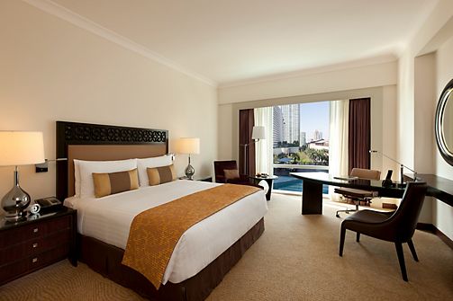 With soothing pool views and a spacious king-sized bed, this Deluxe Room is ideal for a refined yet relaxed city escape. Soft finishes and thoughtful touches enhance the sense of quiet luxury.