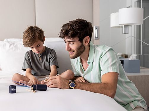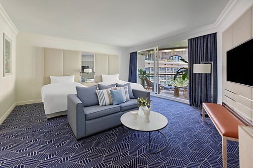 Located on high floors, this 2 double beds room offers connected technologies, blue and beige color design. Perfect to enjoy a breathtaking sea view on the private terrace. Connected TV, coffee machine and digital technologies available. 35 sqm.