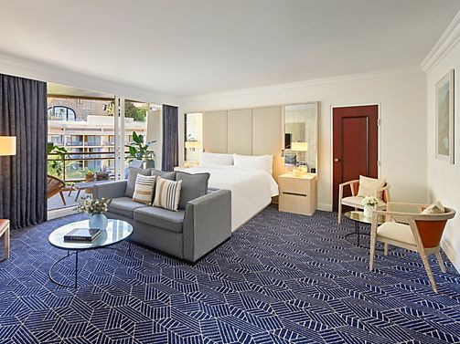 The renovated Fairmont Garden Rooms are stylish and spacious and are open unto private terraces that offer a deck chair and breakfast sitting area. The marble bathroom includes a bathtub with shower and separate water closet and bidet. 35sqm.