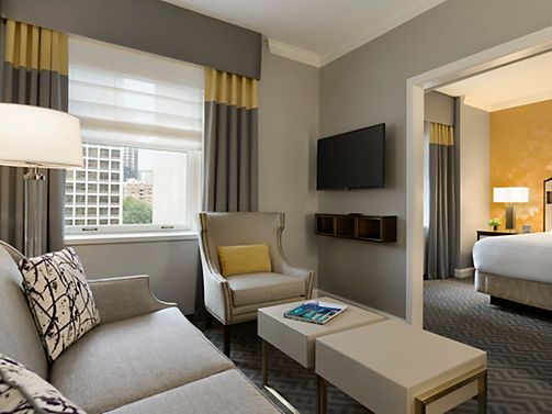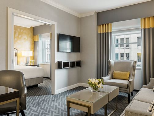 This iconic high-floor suite offers city luxury, abundant natural light, a grand piano, study, fireplace, catering kitchen, dining for 12, and a open living room. Features a king bedroom with the option to connect a second—perfect for celebrating.