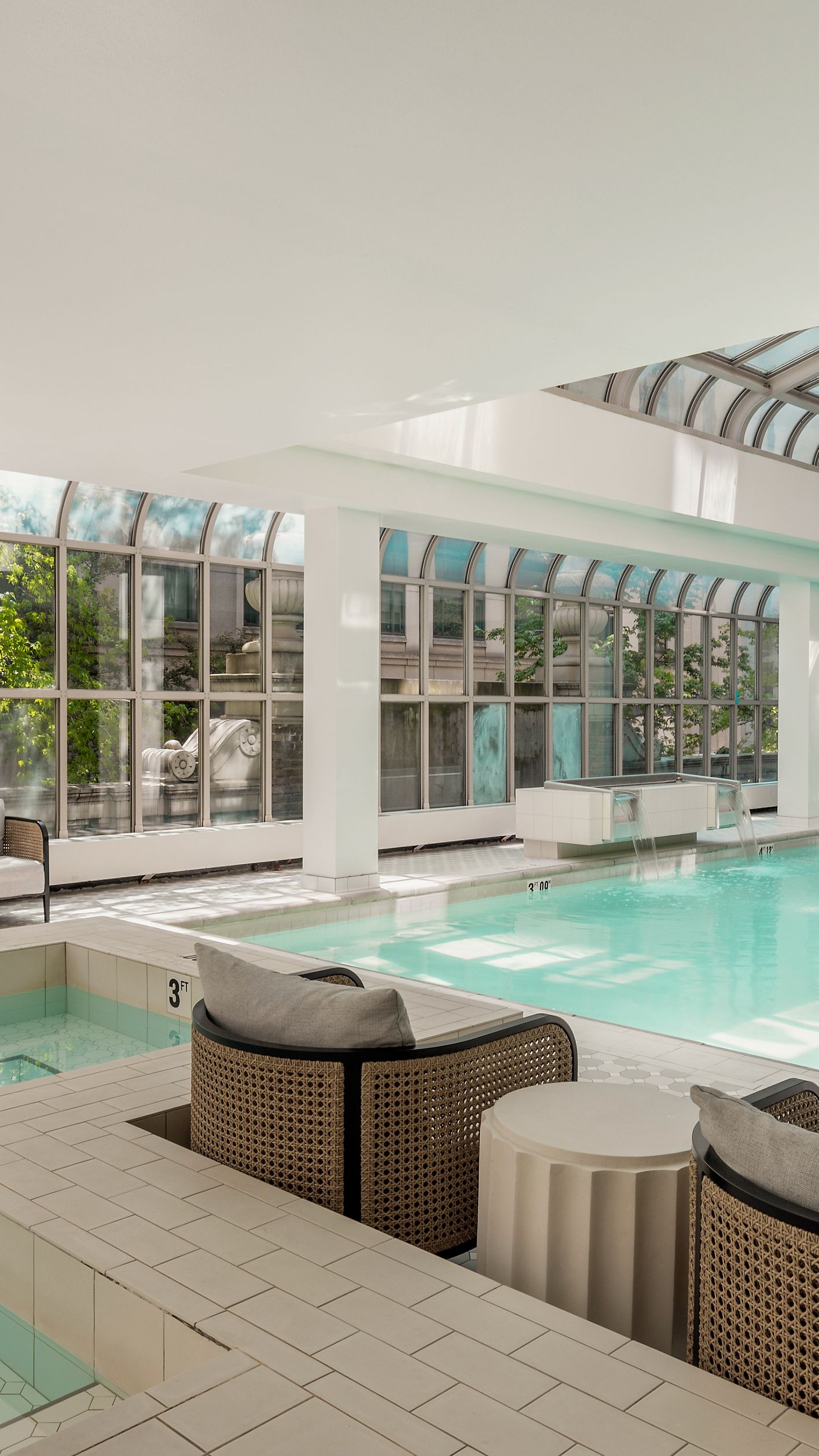 Head to the second floor to enjoy our indoor heated pool and hot tub. The 42-foot pool is perfect for laps or relaxation. Located in a sunny solarium with a skylight, it's bathed in natural light. Pool and Hot Tub Hours: Daily | 8:00 a.m. – 9:00 p.m.