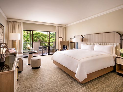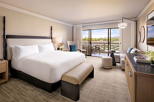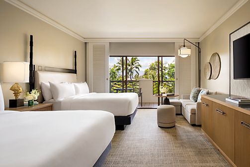 Step into a tranquil Hawaiian oasis with lush garden views. Enjoy a private patio, marble bathroom, WiFi, refrigerator & TV along with Fairmont Gold services such as Private Check-In/Out, Gold Lounge w Comp Cont Bfst, Canapes.