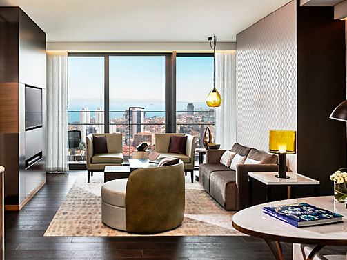 Luxury living space ideal for longer stays, with view of the Bosphorus. Gold Lounge Access, private balcony, large smart TVs in both the living room and bedroom, walk-in closet, mirror TV in the marble bathroom and a separate WC. One King Bed, 126 m2.