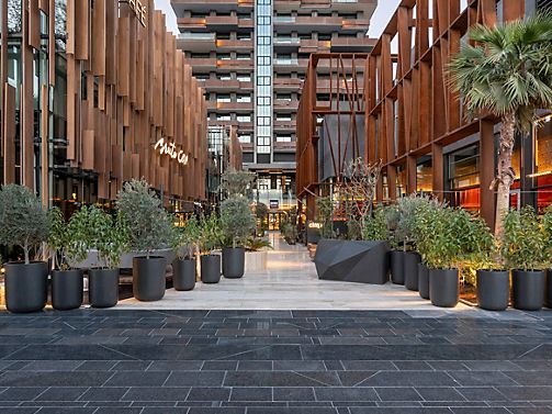 Discover the height of luxury living and immerse yourself in a world of sophistication in our city skyline hotel apartments in Riyadh, designed with the finest furnishings. Unwind on a private terrace with mesmerizing panoramic views or indulge in a refreshing dip in our rooftop swimming pool. For a unique culinary experience, venture to Terraza, a vibrant hub of international restaurants.