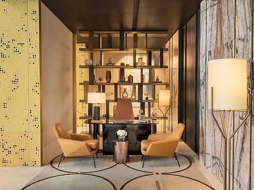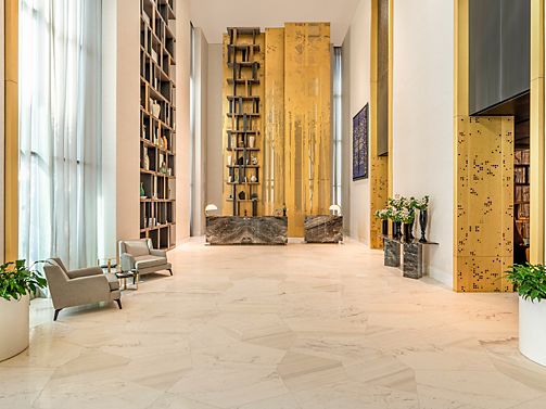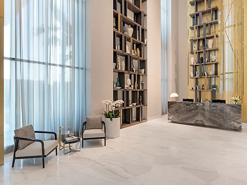 Located on the highest floors, the 718 sqm Royal Penthouse features lavish interiors, 4 master bedrooms, a sumptuous living area, a home theater, 6 bathrooms, luxury office, fully equipped kitchen and maid room. It includes a Jacuzzi and private gym.