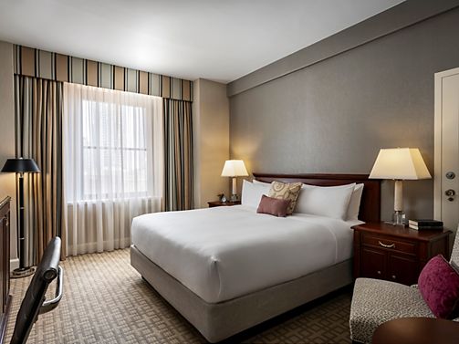 Located throughout the hotel, Fairmont Rooms are traditional guest rooms with elegant, comfortable decor, and various city views. Rooms feature a 42 inch LCD HDTV, in-room business amenities and Le Labo Rose 31 bath amenities.