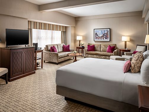 Residential-style suites with personalized Concierge service and access to the exclusive Fairmont Gold Lounge, serving complimentary deluxe breakfast and evening canapés. Includes 55" HDTV, and complimentary WiFi.