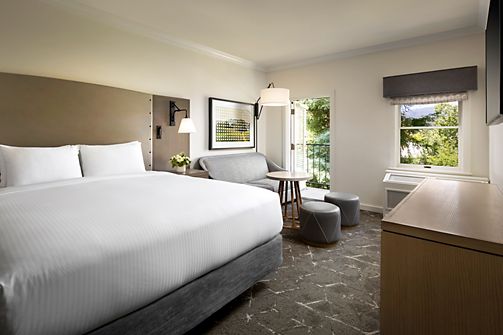Nestled beneath towering sycamore and eucalyptus trees, our historic resort is your sanctuary in wine country. Relax in elegant rooms and suites with plush linens, elevated touches, and serene surroundings. Step onto your private balcony or patio and let nature set the tone.