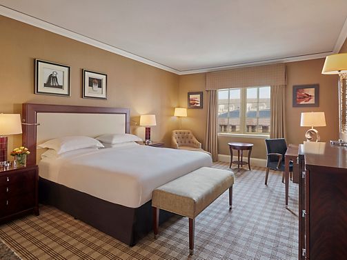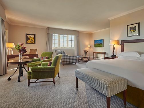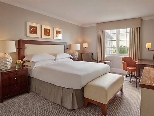 Fairmont rooms feature, one king bed, bathroom with separate shower and bathtub and enhanced views over the grounds and golf courses.