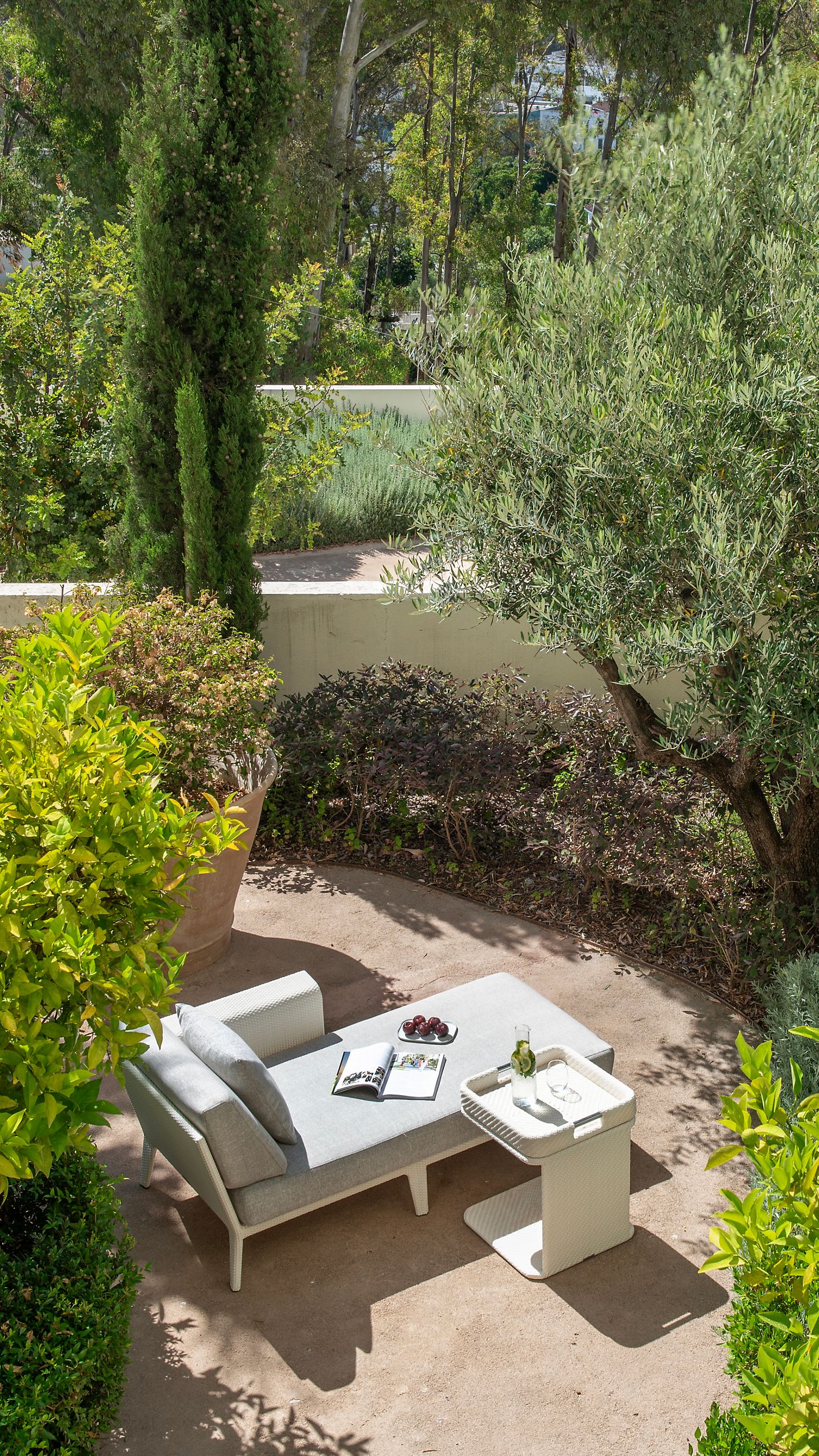 This room offers a refreshing private garden terrace of 11 m², a magnificent bedroom with an integrated lounge and a luxurious marble bathroom. The eclectic room design mixes traditional Moroccan decor with reflections of the Mediterranean colors.