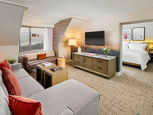 Spacious Suite featuring a private bedroom and a separate living room area with a sofa bed