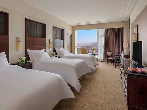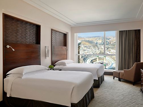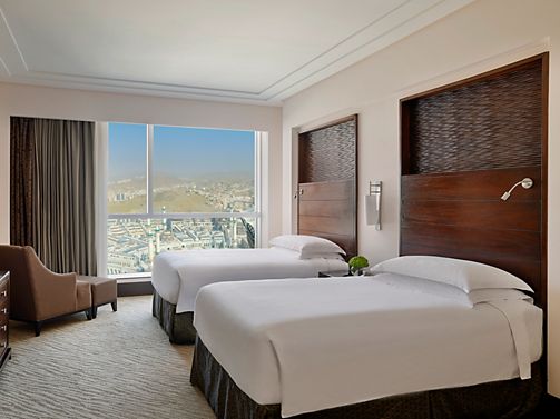 Fairmont Gold Twin Haram 42m², Room with Twin Bed, Full Bath, 32" LCD/ TV, Coffee / Tea Refreshment Center, In-room Speakers for Haram Audio, Non-Smoking. Elegant and comfortable, offering a serene experience with stunning views and exceptional service.
