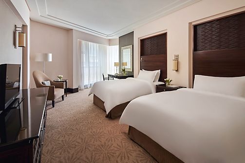 Fairmont Gold Room City 42m² , Room with Twin Bed, Full Bath , 32" LCD / TV, Coffee / Tea Refreshment Center, In Suite room for Haram Audio, Non - Smoking. Luxurious and comfortable , offering guests a serene environment to relax and rejuvenate.