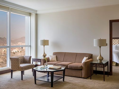 Two Bedroom Suite Haram, 172m², Room with king size bed, 1 Full Bath, 1 Guest toilet, Separated living room , Two Sofa Beds, In-Suite Mini-bar, In-Suite Speakers for Haram Audio, Non-Smoking. Luxurious and spacious, ideal for relaxation and work.