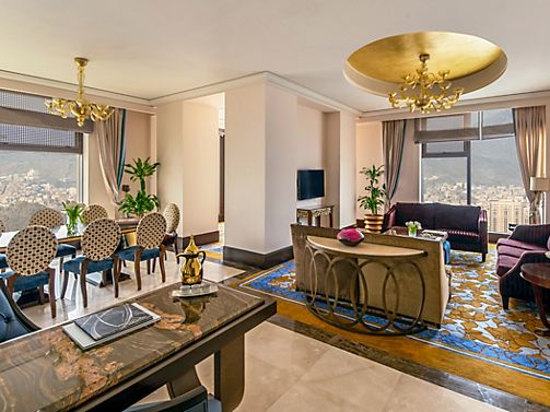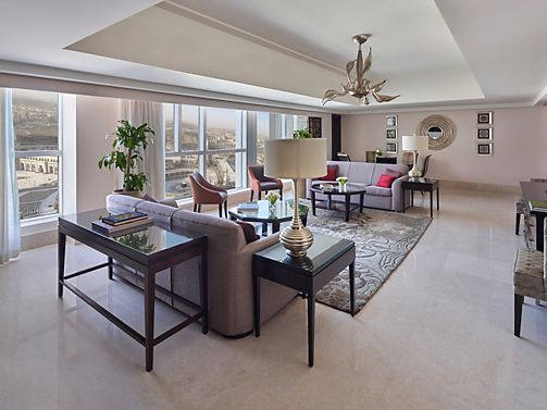 Fairmont Gold Executive Suite City, 138m², 2 Rooms, 1 King size bed, 2 Single size beds, Living Room, Two Full Baths, 1 Guest toilet, One Sofa Bed, In-Suite Mini-bar, In-Suite Speakers for Haram Audio, Internet Access, Non-Smoking. Luxurious and spacious,