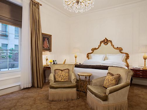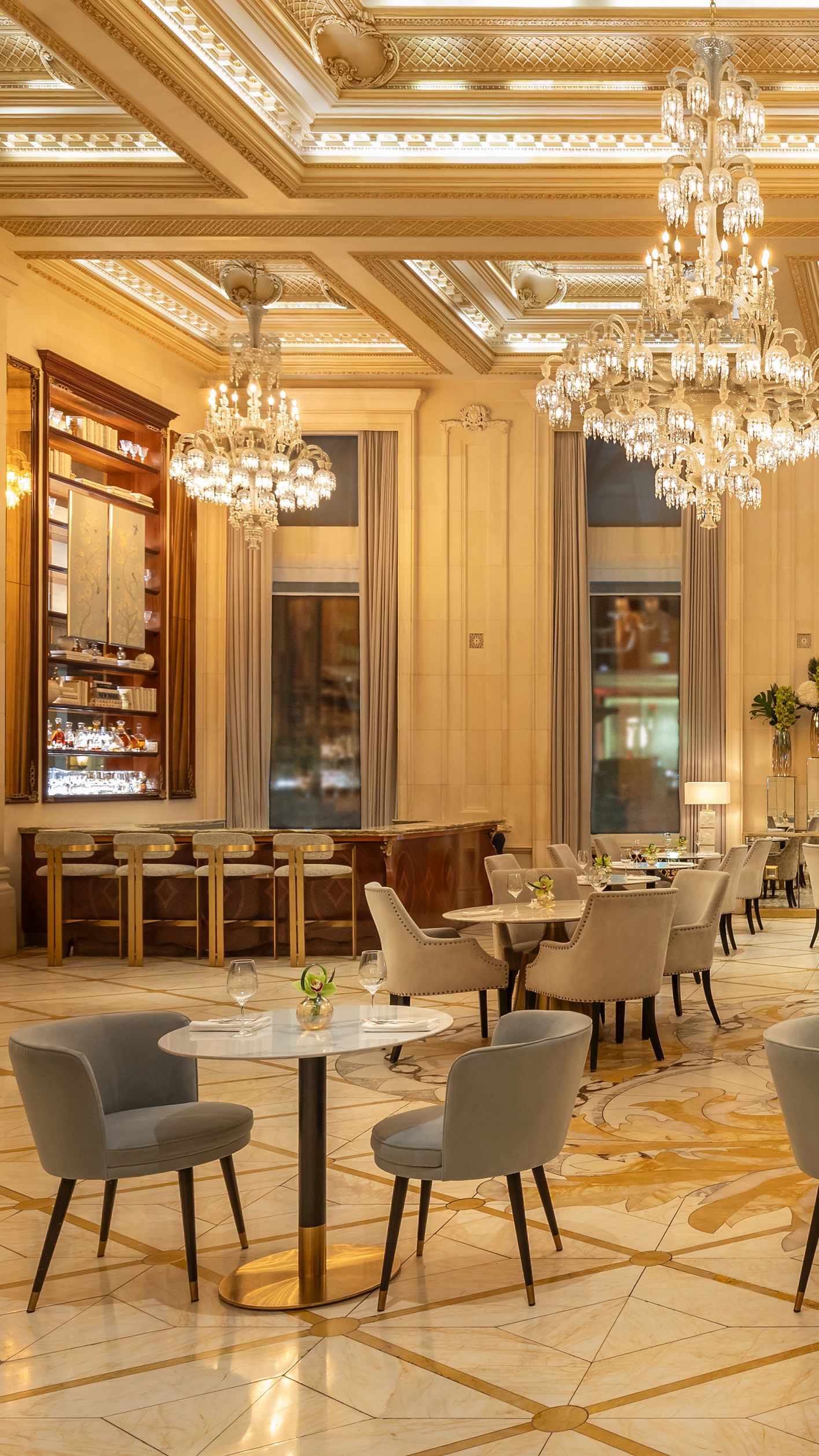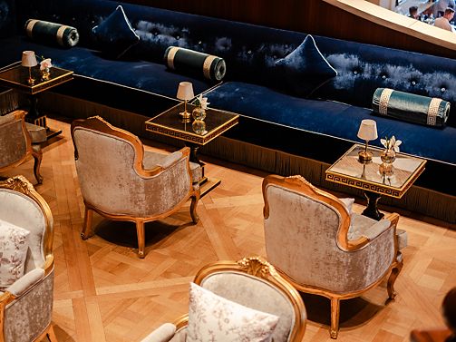 Junior suite in dramatic Art Deco decor of the Jazz Age with dome ceilings, antique mirrors, and glass chandeliers. Includes butler service.
