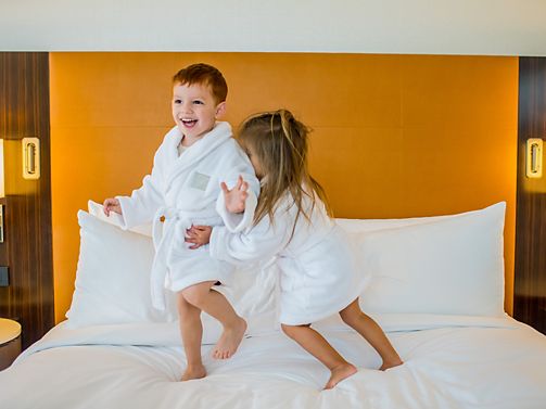 Spacious Living Area, 50in HDTV, Skyline Views, Nespresso Coffee, Tea Kettle, Floors 31-37, 1 King plus 1 Queen Sofabed, can connect to 2nd roomreservation on request, Floor 36, Height Adjusted Peep Hole, Hand Held Shower, Lower Shelf in Closet