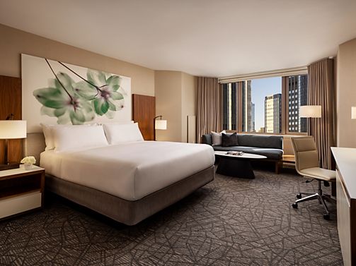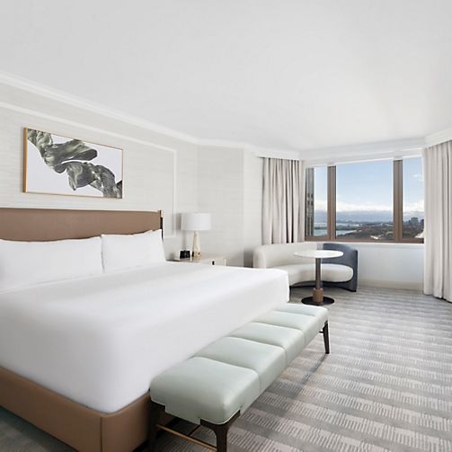 Newly fully renovated, City views with Fairmont Gold Lounge access, includes hot breakfast and evening snacks. Walk in shower with dual vanity area for comfort. Guestrooms include sitting area with workspace.