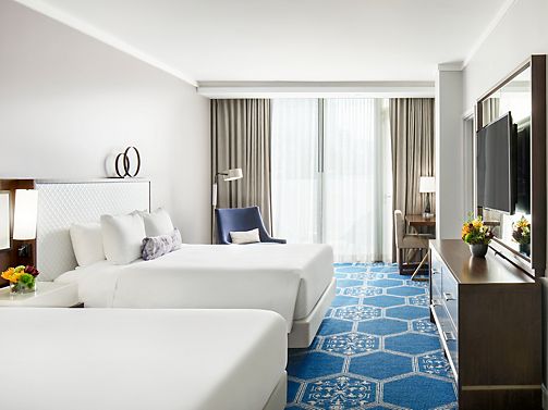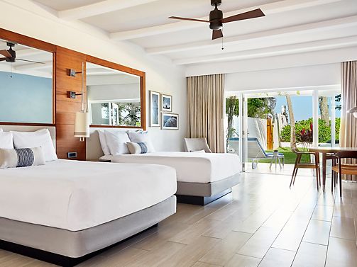 Discover a peaceful retreat in the Caribbean and escape to our San Juan paradise in a guestroom featuring two queen beds and a cozy sitting area.