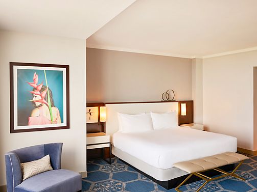 Located in the Grand Tower, this guestroom is an elegant and spacious reflection of the rich culture of San Juan that features one king bed and a luxurious comfortable sitting area. Call to inquire about guaranteed connecting options.