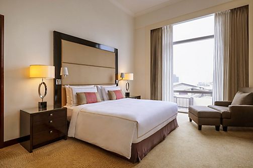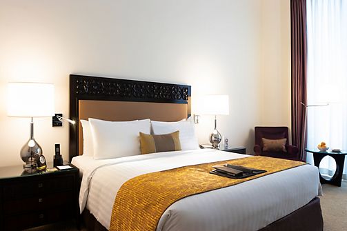 With soothing pool views and a spacious king-sized bed, this Deluxe Room is ideal for a refined yet relaxed city escape. Soft finishes and thoughtful touches enhance the sense of quiet luxury.