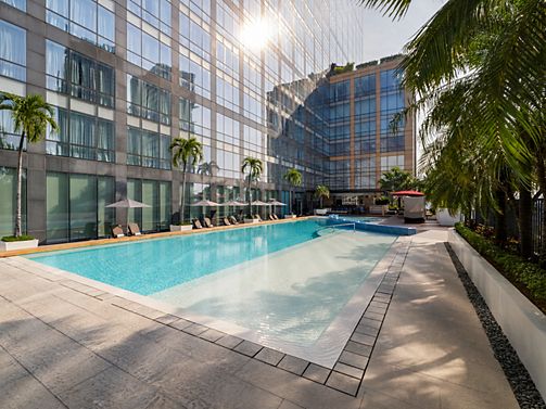 Yes. Our outdoor swimming pool is located on the fourth floor at Fairmont Makati and is open from 6 am to 10 pm. Pool towels are also available upon request.