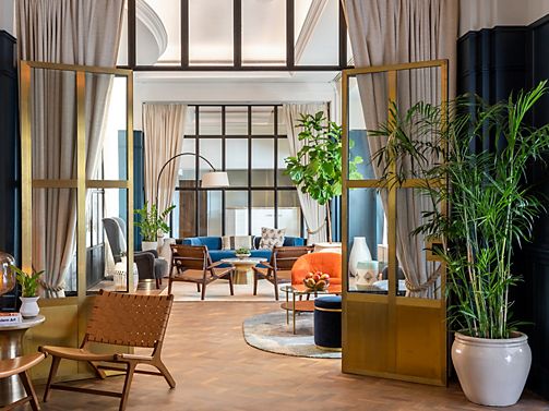 Located in historic Palisades Building, city or garden views, plush bathrobe, work desk, Keurig coffee machine, Le Labo bath products