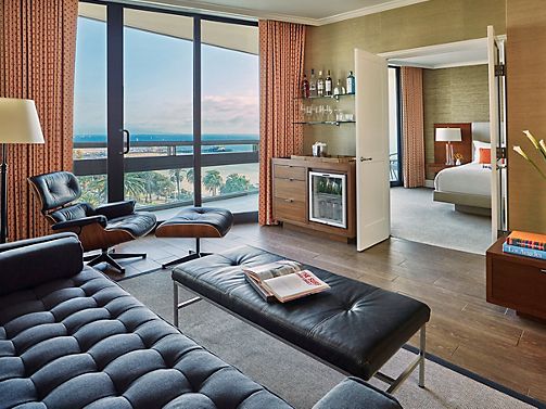 Located in the Ocean Tower, Le Labo bath products, plush bathrobe, Keurig coffee machine, work desk