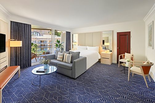 The renovated Fairmont Garden Rooms are stylish and spacious and are open unto private terraces that offer a deck chair and breakfast sitting area. The marble bathroom includes a bathtub with shower and separate water closet and bidet. 35sqm.