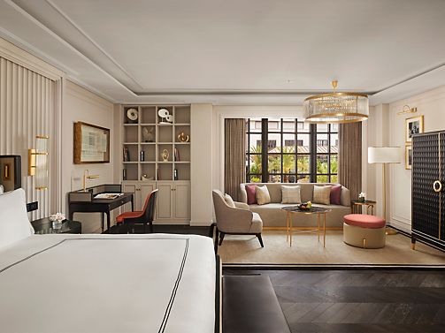 A luxurious suite where sophistication meets style. Enjoy Gold Lounge access, Fairmont Butler Service, and complimentary transport while immersing yourself in a serene space with eclectic interiors.