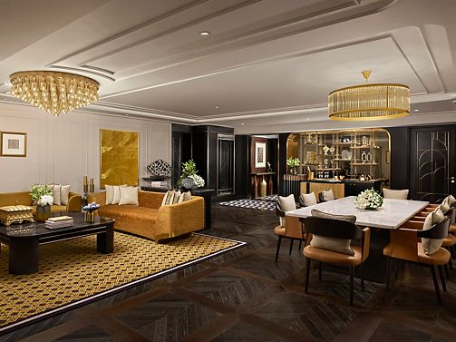 Experience the grandeur of Signature Suite, an oasis of sophistication with one double and two twin Hollywood beds, expansive living spaces, a Jacuzzi, and Gold Lounge access. Enjoy unparalleled Fairmont Butler Service and complimentary transport.