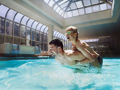 Head to the second floor to enjoy our indoor heated pool and hot tub. The 42-foot pool is perfect for laps or relaxation. Located in a sunny solarium with a skylight, it's bathed in natural light. Pool and Hot Tub Hours: Daily | 8:00 a.m. – 9:00 p.m.