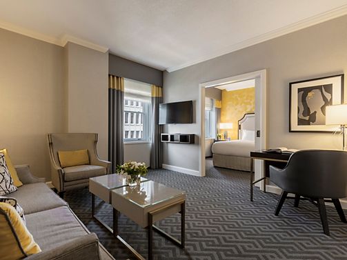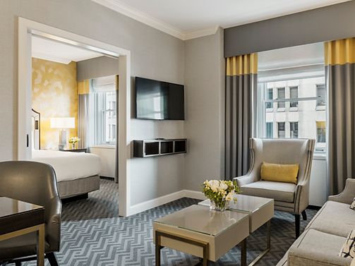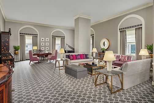 This iconic high-floor suite offers city luxury, abundant natural light, a grand piano, study, fireplace, catering kitchen, dining for 12, and a open living room. Features a king bedroom with the option to connect a second—perfect for celebrating.