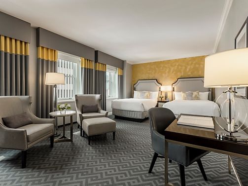 Located on the corner of the building, these rooms offer more space, as well as an additional window providing natural light. They feature spacious en-suite marble bathrooms with rain showers, intimate sitting areas, and workspace.