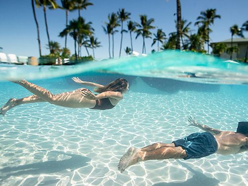 Snorkel in our private lagoon, watch the sunrise from an outrigger canoe, and indulge in oceanfront dining at our 5-star beach resort. Embrace Hawaiʻi's heritage through hula, lei making, and storytelling. Make a splash in our expansive oceanfront pool. Relax in our open-air Spa Without Walls, or play 18 holes at the award-winning Mauna Lani Golf Club.