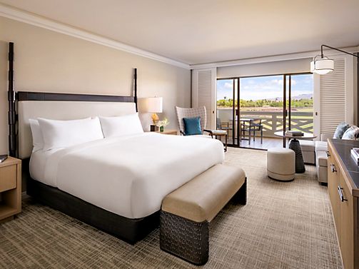 Step into a tranquil Hawaiian oasis with lush garden views. Enjoy a private patio, marble bathroom, WiFi, refrigerator & TV along with Fairmont Gold services such as Private Check-In/Out, Gold Lounge w Comp Cont Bfst, Canapes.