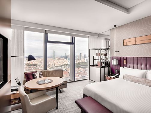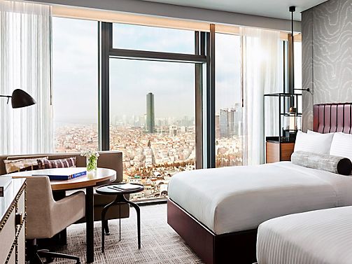 Looking over Istanbul with floor to ceiling windows, this contemporary room offers Gold Lounge access, a rain showers and your choice of bathtub or private Turkish bath, one king bed or two beds, accessible rooms available / 40 m2