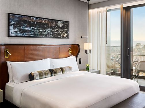 Luxury living space ideal for longer stays, with view of the Bosphorus. Gold Lounge Access, private balcony, large smart TVs in both the living room and bedroom, walk-in closet, mirror TV in the marble bathroom and a separate WC. One King Bed, 126 m2.