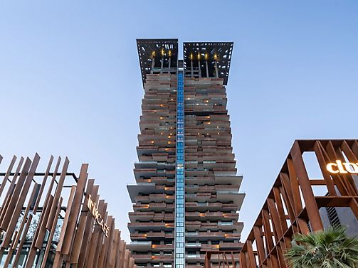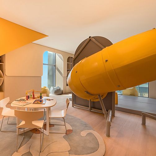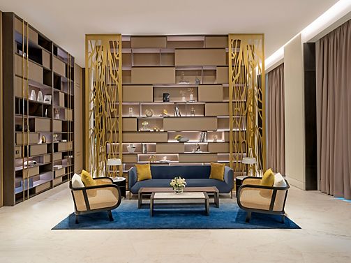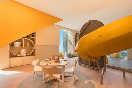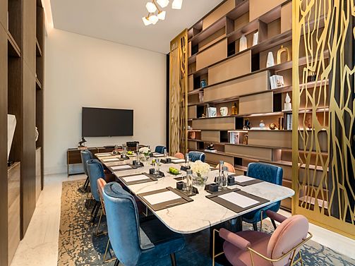 Located on the highest floors, the 718 sqm Royal Penthouse features lavish interiors, 4 master bedrooms, a sumptuous living area, a home theater, 6 bathrooms, luxury office, fully equipped kitchen and maid room. It includes a Jacuzzi and private gym.