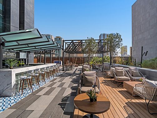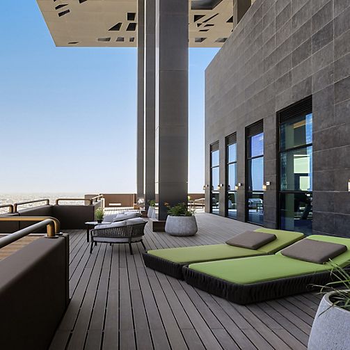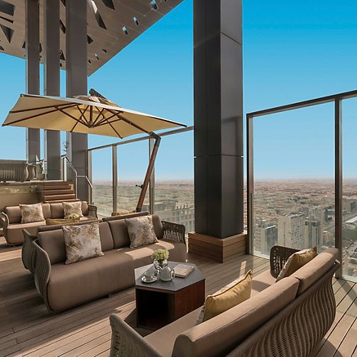 Discover the height of luxury living and immerse yourself in a world of sophistication in our city skyline hotel apartments in Riyadh, designed with the finest furnishings. Unwind on a private terrace with mesmerizing panoramic views or indulge in a refreshing dip in our rooftop swimming pool. For a unique culinary experience, venture to Terraza, a vibrant hub of international restaurants.
