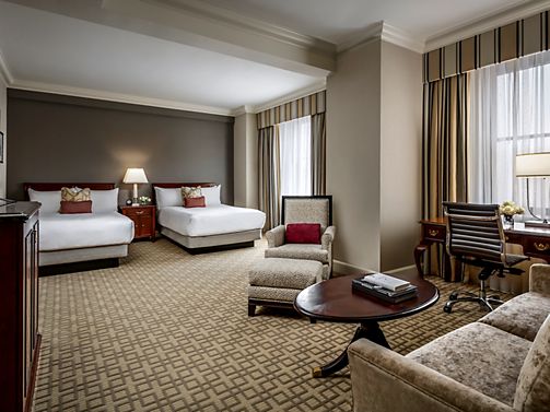 Located throughout the hotel, Fairmont Rooms are traditional guest rooms with elegant, comfortable decor, and various city views. Rooms feature a 42 inch LCD HDTV, in-room business amenities and Le Labo Rose 31 bath amenities.